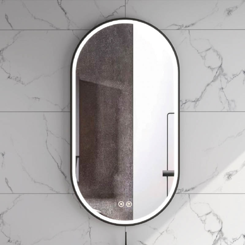 Oglinda Fluminia, Dali Black, ovala, cu iluminare LED si rama neagra