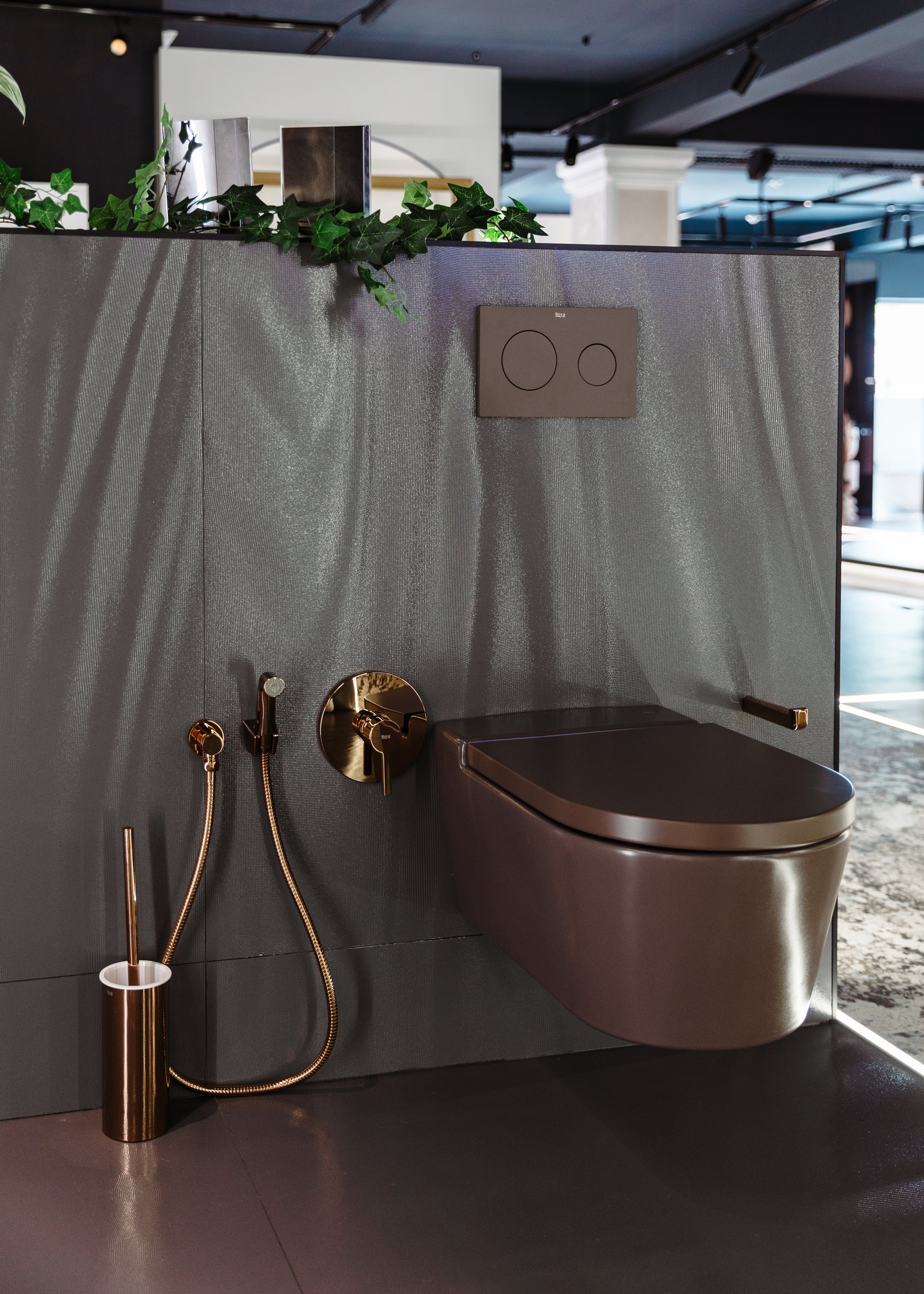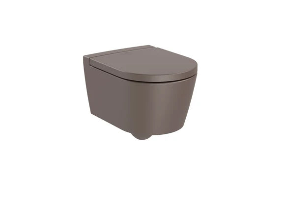 Vas WC Inspira Coffee compact suspendat, din portelan, Rimless®, cu evacuare orizontala, forma rotunda