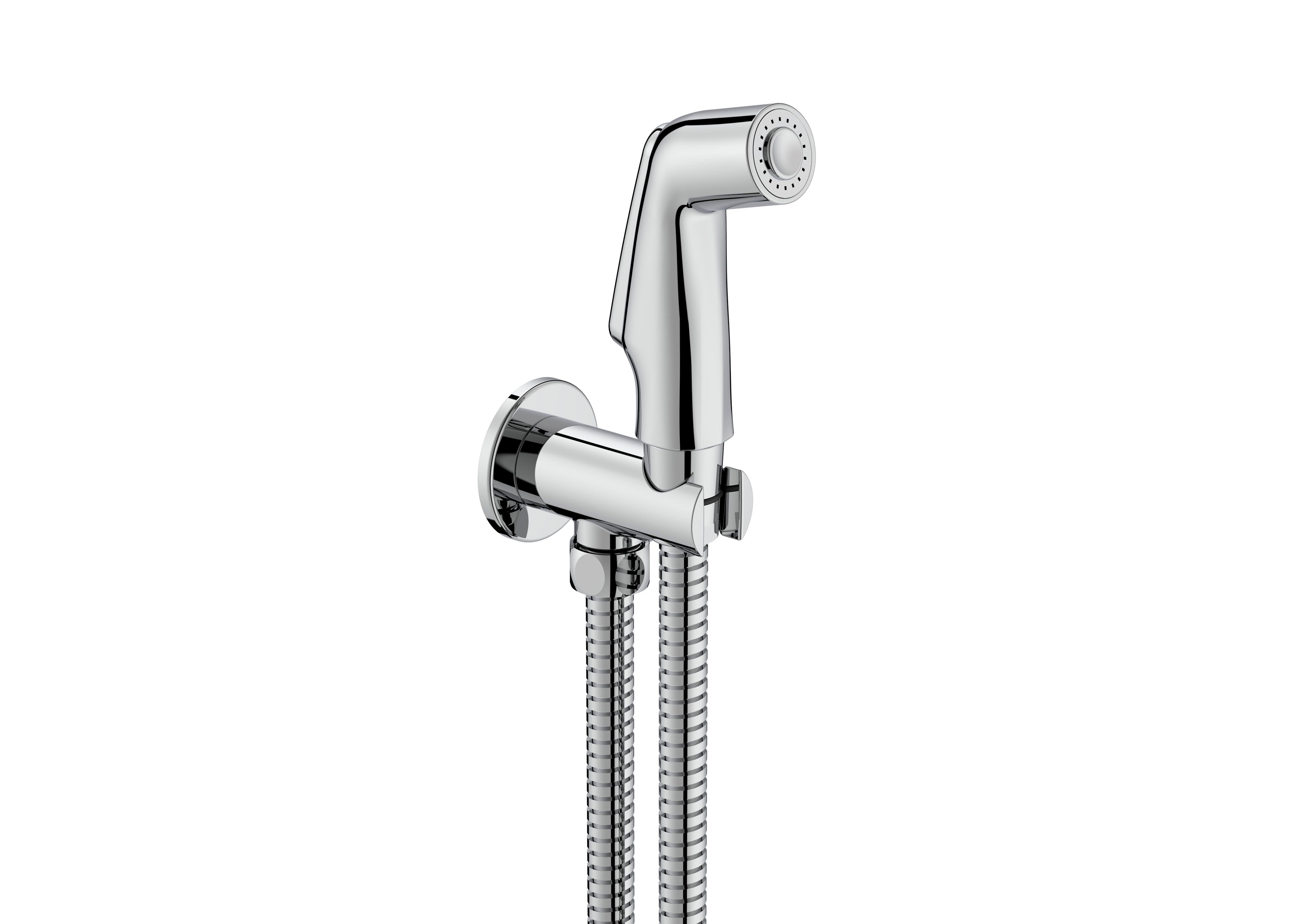 Dus igienic, montaj pe perete. Include dus de mana, suport dus-racord apa cu auto stop si furtun metalic flexibil cu lungimea de 1,2m